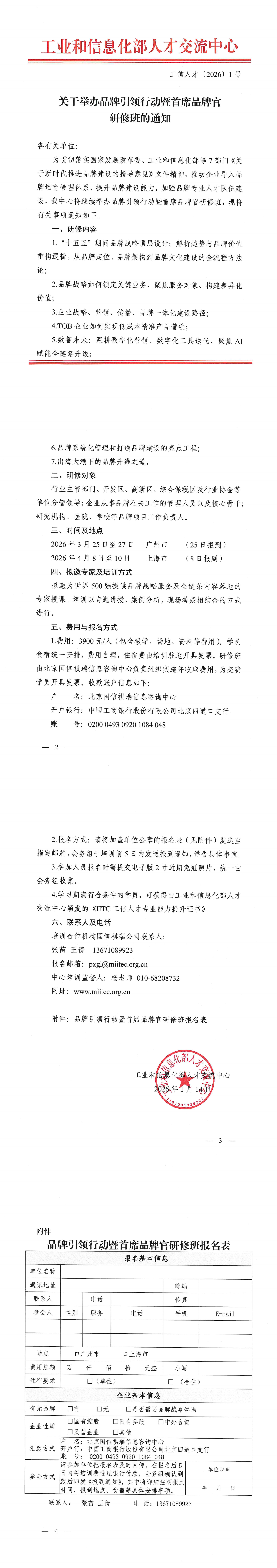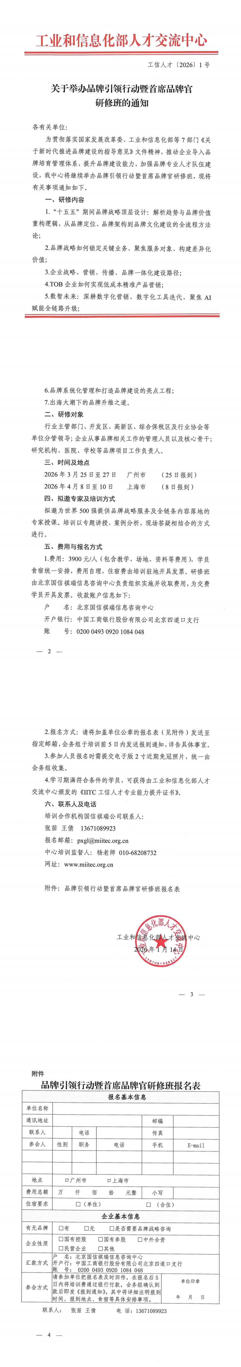 关于举办品牌引领行动暨首席品牌官研修班的通知(26年3-4月)