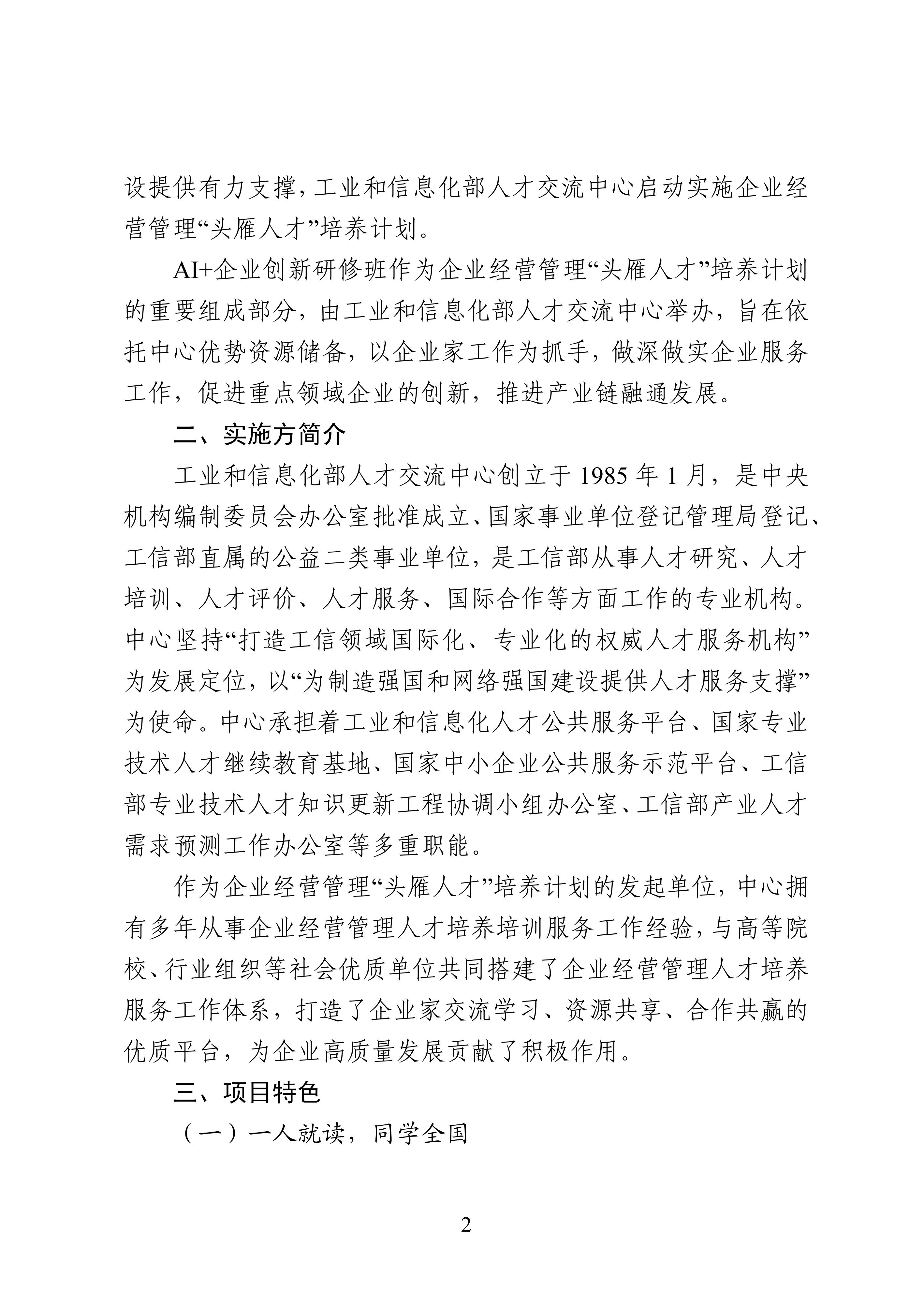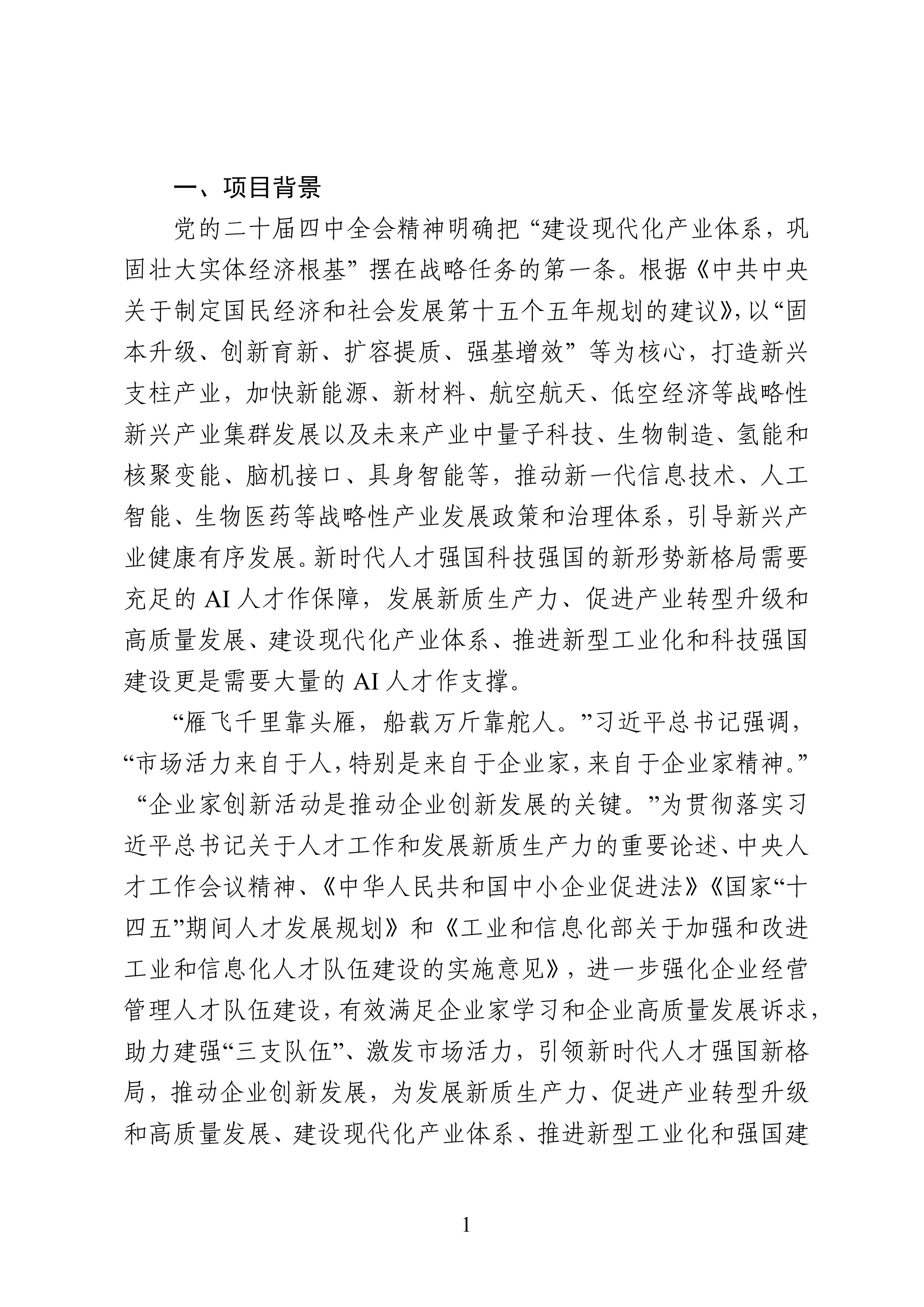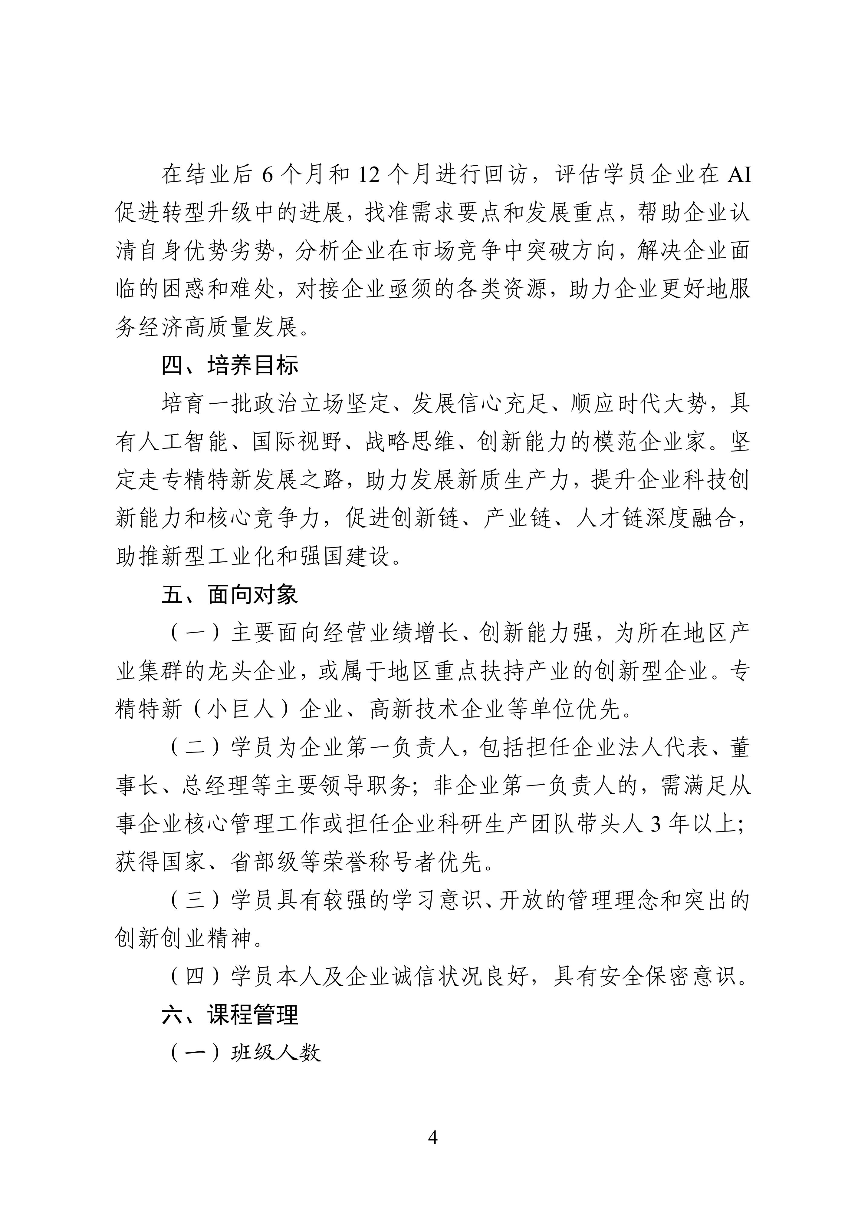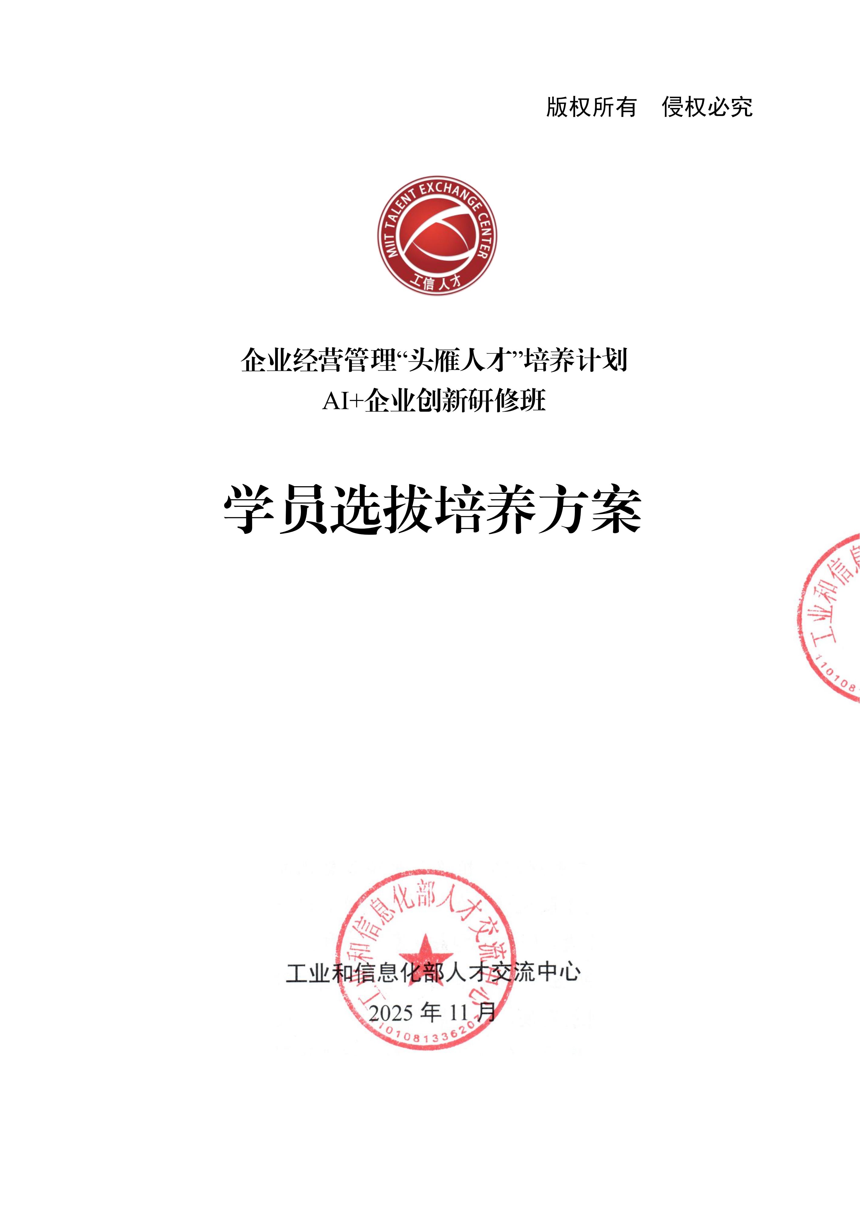 企业经营管理“头雁人才”培养计划AI+企业创新研修班学员选拔培养方案