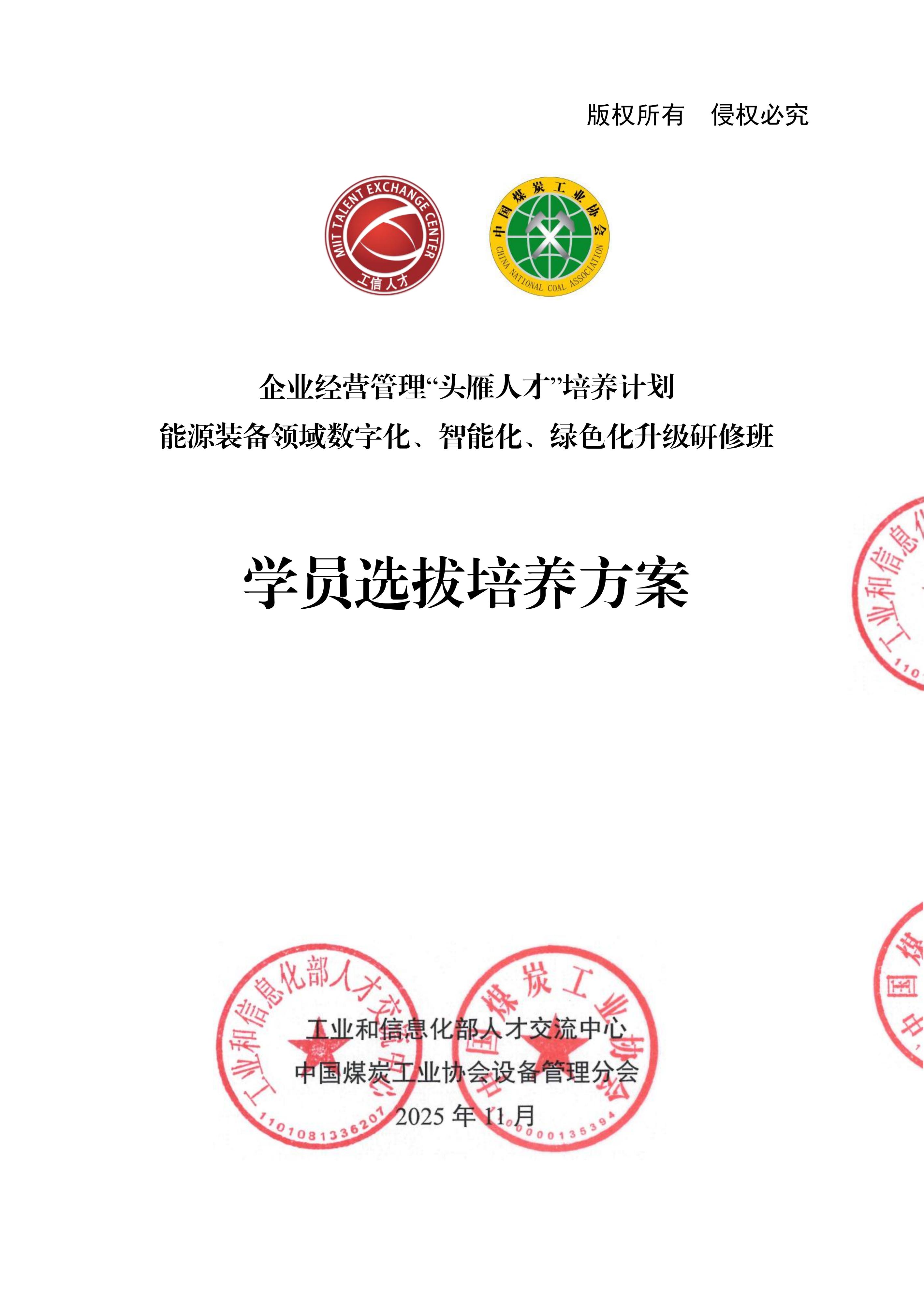 企业经营管理“头雁人才”培养计划能源装备领域数字化、智能化、绿色化升级研修班学员选拔培养方案