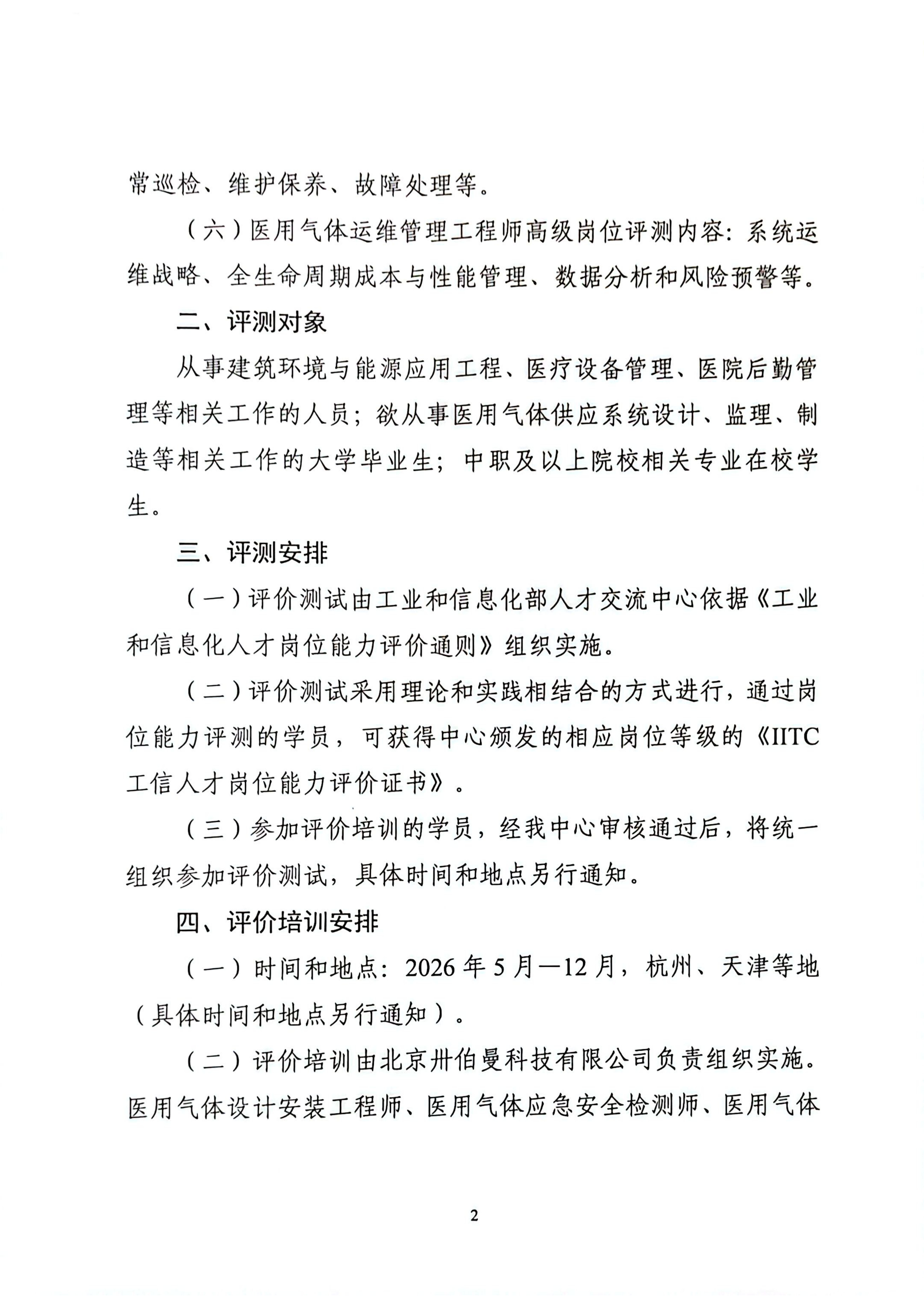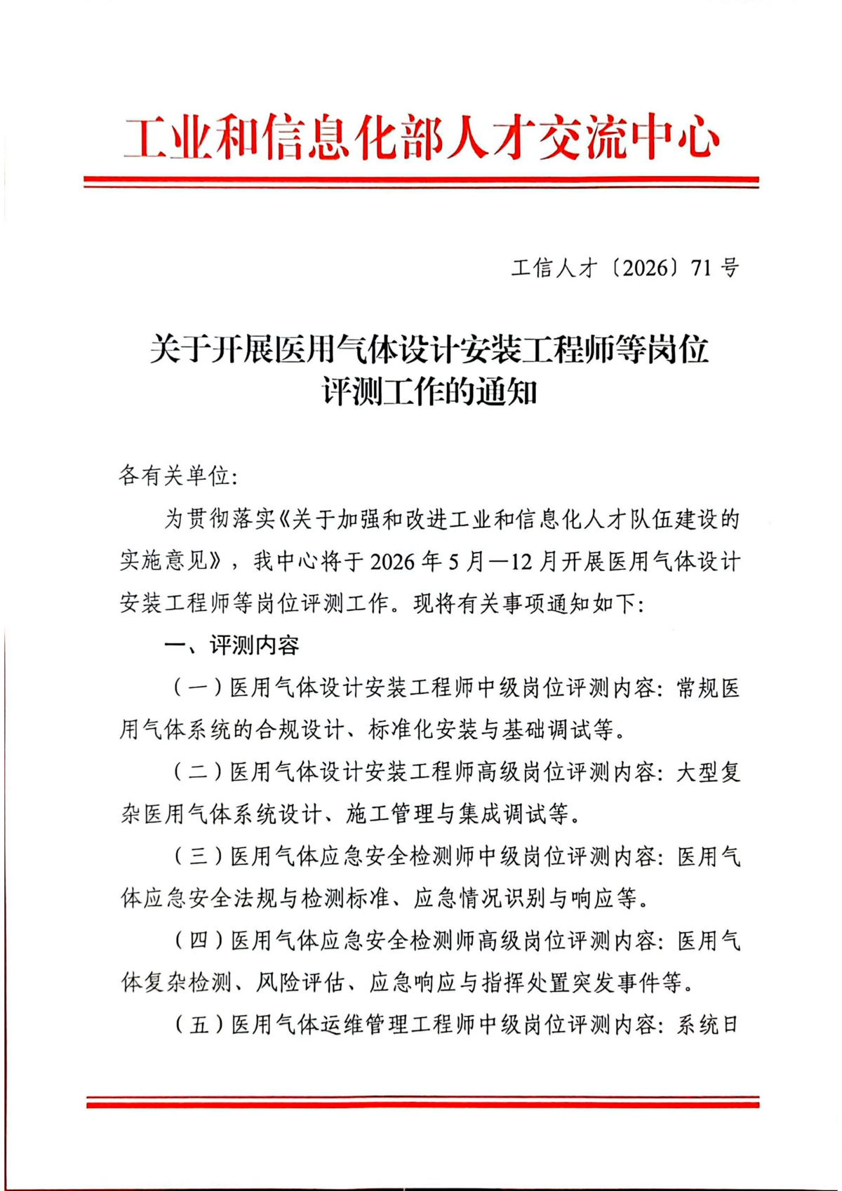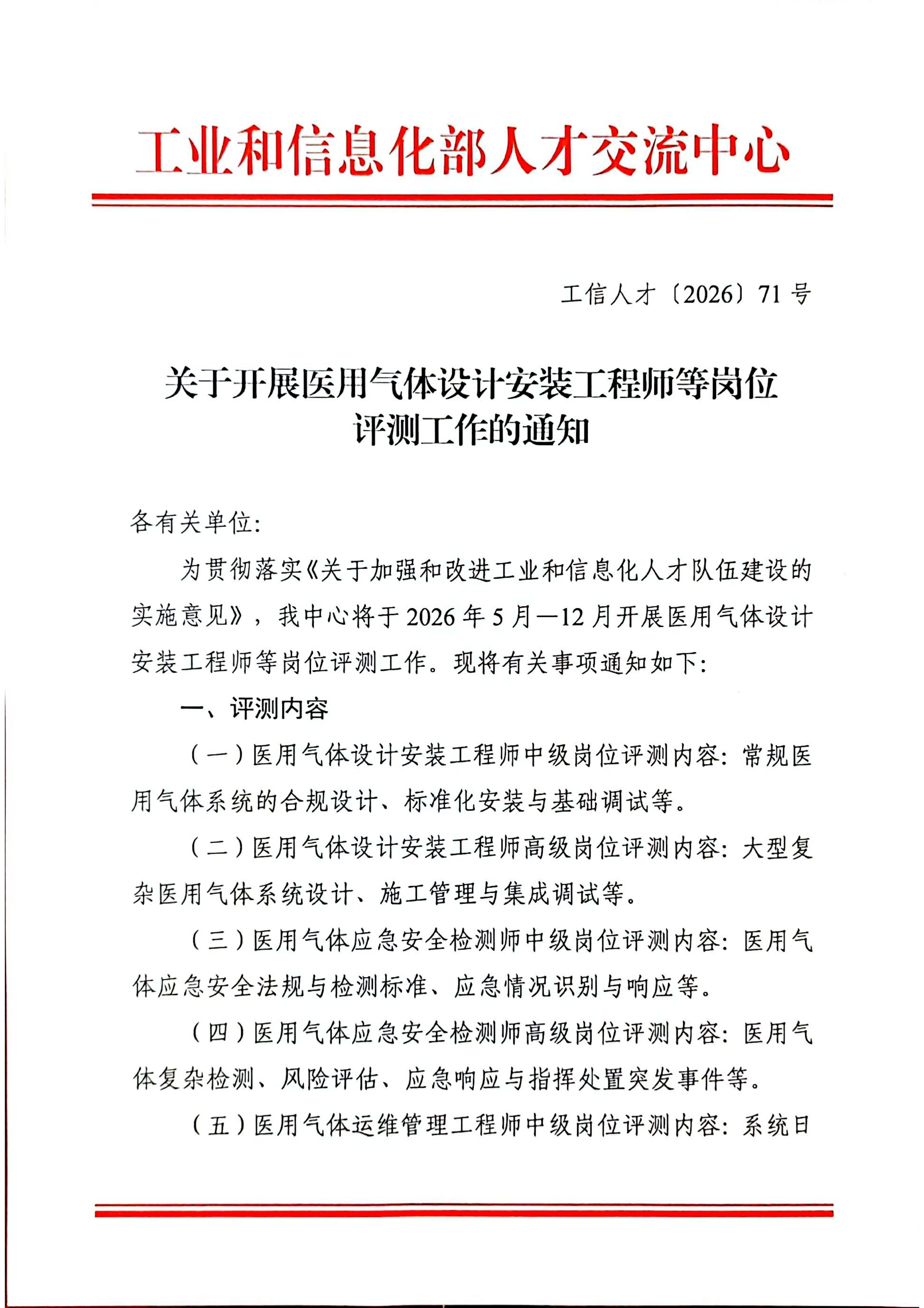 关于开展医用气体设计安装工程师等岗位评测工作的通知
