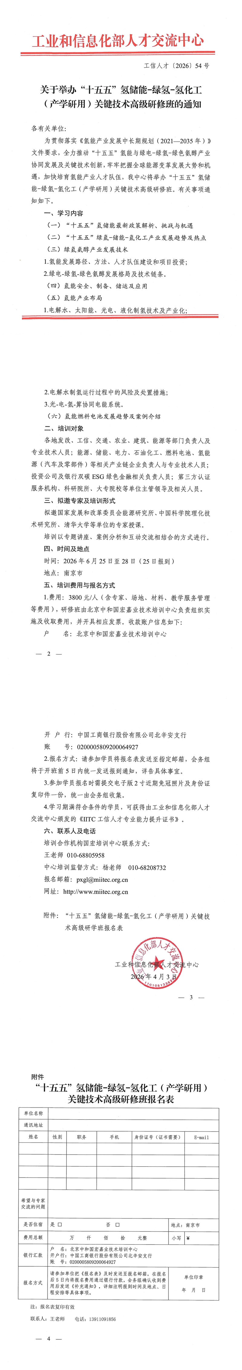 关于举办“十五五”氢储能-绿氢-氢化工(产学研用)关键技术高级研修班的通知